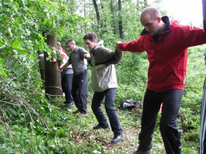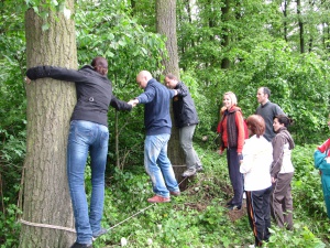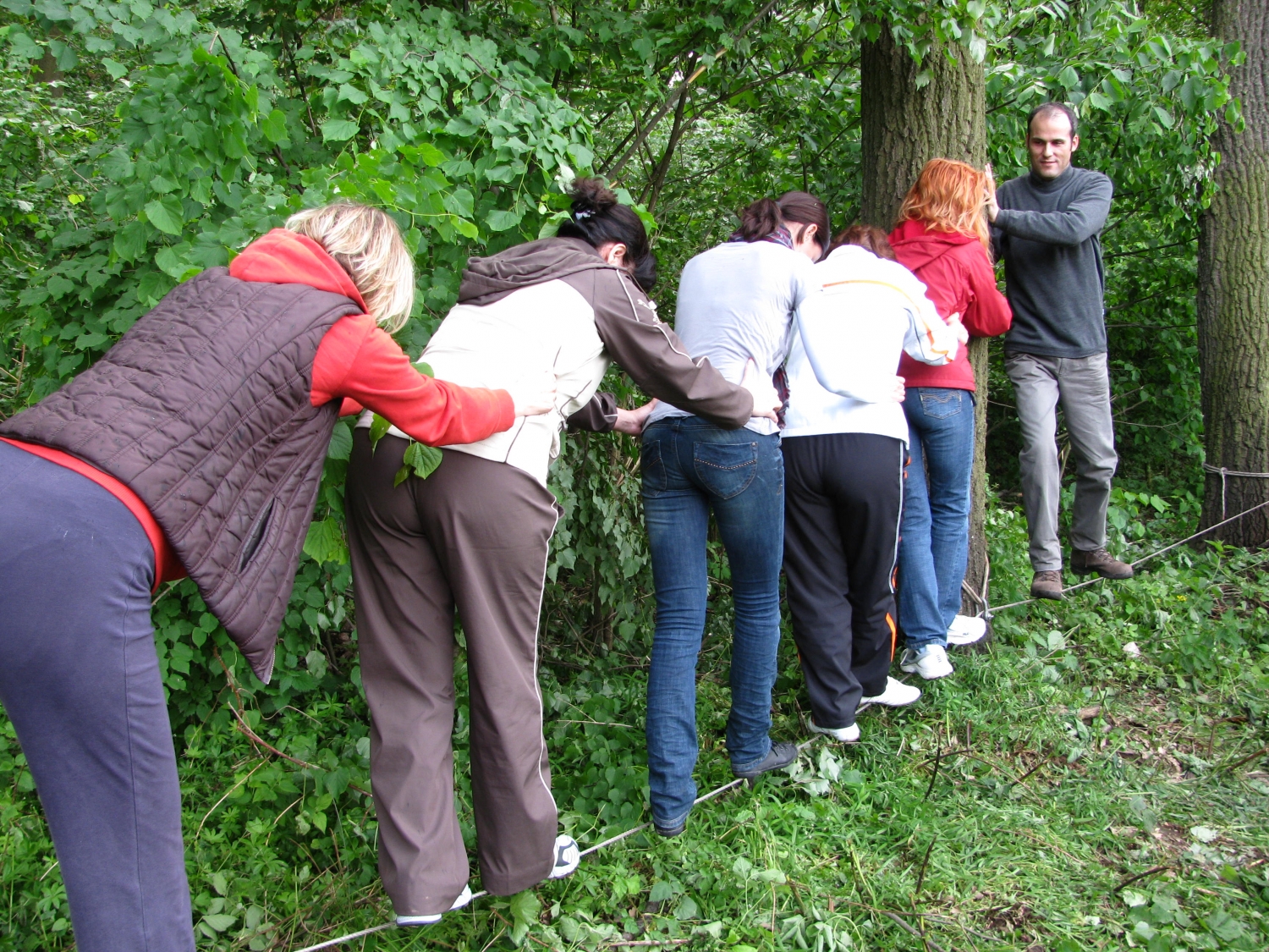 Térdmagasságban, nagy erővel kifeszített drótkötélen kell a csapattagoknak párokban átkelniük a képzeletbeli mocsár fölött. Akik leesnek, a mocsári gázoktól elgyengülve, hátrányos helyzetből próbálkozhatnak újra a csapat támogatásával. A feladat csak a legszorosabb és leghatékonyabb csapatmunkával, bizalommal teljesíthető.