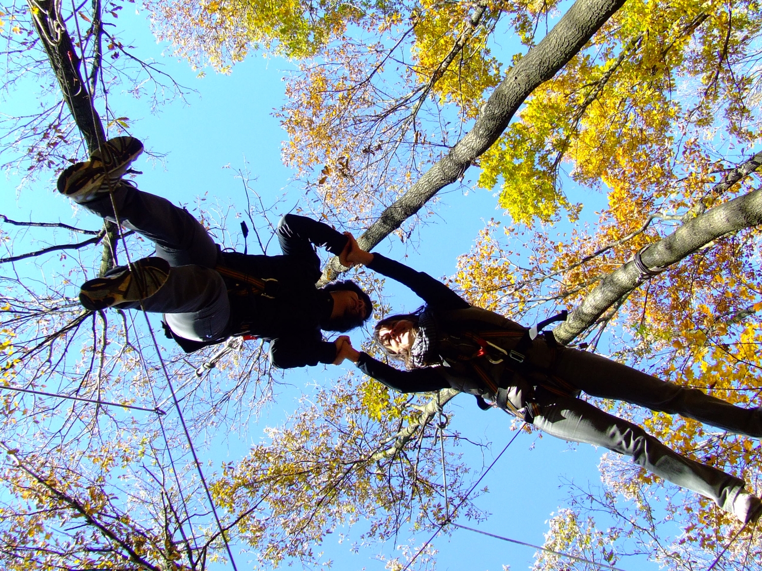 Térdmagasságban, V alakban nagy erővel kifeszített drótkötélen kell minél messzebb eljutnia két résztvevőnek, miközben egymásnak támaszkodnak. A többiek közben biztosítják a kötéltáncosokat, leesés ellen. Cél, hogy a „táncosok” minél távolabbra jussanak a V csúcsától.