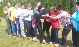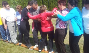 Igazi egyensúlyozós csoportjáték non-verbális kommunikációval. A csapat egy földön fekvő gerendán áll, és az arról való lelépés nélkül kell helyet változtatni, különböző szempontok alapján.