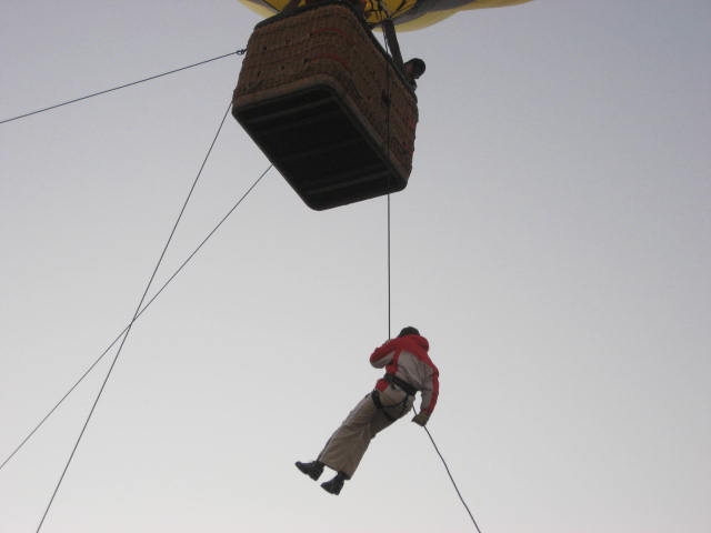 Extrém kötéltechnikai programunk alkalmával élje át a lebegés és ereszkedés fantasztikus érzését. A függeszkedés során egy kötél biztosítja, hogy ne repüljön el a ballon, melyben egyszerre 4 fő fér el. Az ereszkedés a hőlégballon kosarából történik, speciális hegymászó felszerelés segítségével, profi hegymászók felügyelete mellett. A gyakorlat végrehajtásához semmi nemű fizikai felkészültség nem szükséges. A hőlégballonozáshoz elengedhetetlen a megfelelő időjárás!