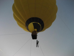 Extrém csapatépítő programunk alkalmával lehetőséget biztosítunk a bátor résztvevőknek, hogy a föld felett 50 méterre lebegő, függeszkedő hőlégballonból, alpin-technikai eszközök segítségével leereszkedhessenek. A hőlégballon függeszkedését, stabilitását kötelek segítségével biztosítjuk, mely a résztvevőkkel liftezve le-fel mozog. A ballonba egyszerre 4 fő fér el. Az ereszkedés a hőlégballon kosarából történik, speciális hegymászó felszerelés segítségével, profi hegymászók felügyelete mellett. A gyakorlat végrehajtásához semmi nemű fizikai felkészültség nem szükséges. A hőlégballonos extrém csapatépítő program megvalósításához elengedhetetlen a megfelelő időjárás!