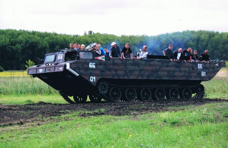 Lorem ipsum dolor sit amet, consectetur adipiscing elit, sed do eiusmod tempor incididunt ut labore et dolore magna aliqua.A résztvevők kipróbálhatják a 4x4 hajtású, páncélozott, felderítő, BRDM-2 típusú kétéltű járművet, amely a 70'-80'-as évek alapvető harckocsi típusa volt. Hatékony körbeforgatható toronyba beépített fegyverzettel és módosított, ABV -védelemmel ellátott belső térrel rendelkezik, mely vízsugárhajtóművével úszóképes is. A BRDM-2 négykerék hajtással rendelkezik, valamint speciális ”mankókerekei” révén terepmászó képessége szinte megközelíti a lánctalpas járművekét. Páncélzata 15 mm, súlya 7 t, motorja 180 LE-s és műúton akár 100 km/h sebesség elérése is képes ez a fém szörnyeteg.