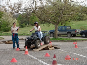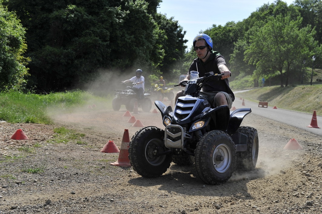 A résztvevőknek lehetőséget biztosítunk félautomata quadok vezetésére Off-Road pályánkon, ahol megtalálható számos különleges és speciális akadály, mint például a rönkszőnyeg, siratófal, jobbra – balra dőlés, mély árok, homokágy. Tapasztalt instruktoraink elméleti és gyakorlati oktatást tartanak a quadozás alapjairól, technikáiról és szabályairól. A biztonság érdekében a résztvevőknek bukósisak viselése kötelező. Bójákból épített ügyességi pályánkat az ország egész területén ki tudjuk építeni.