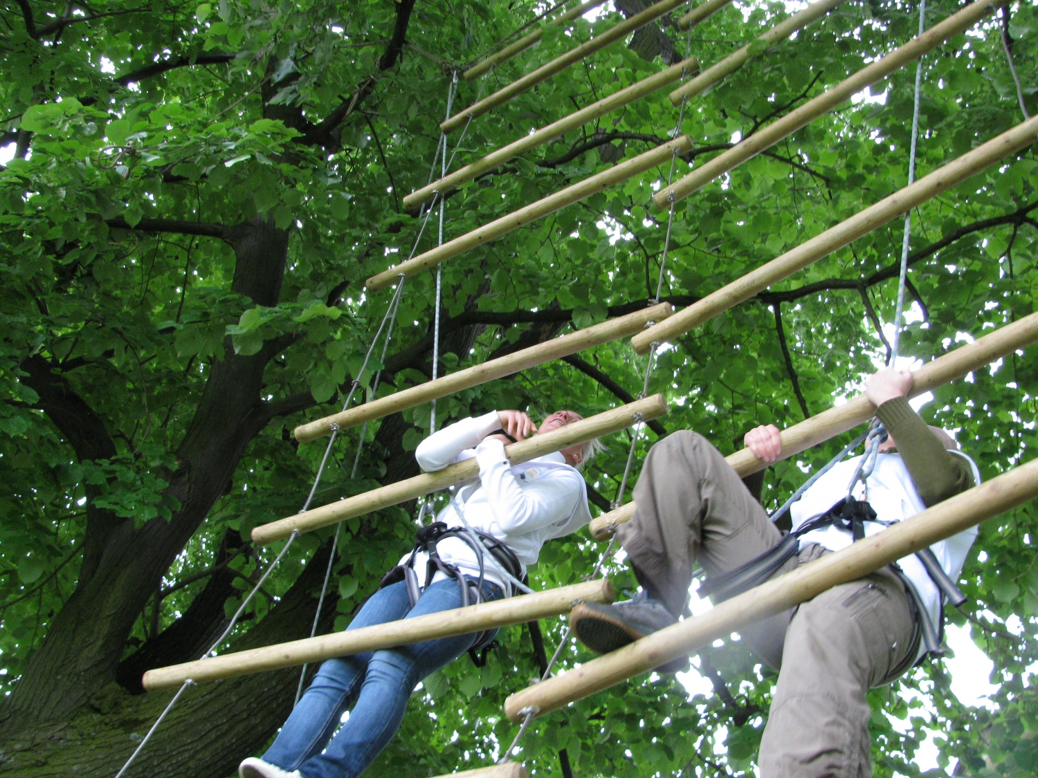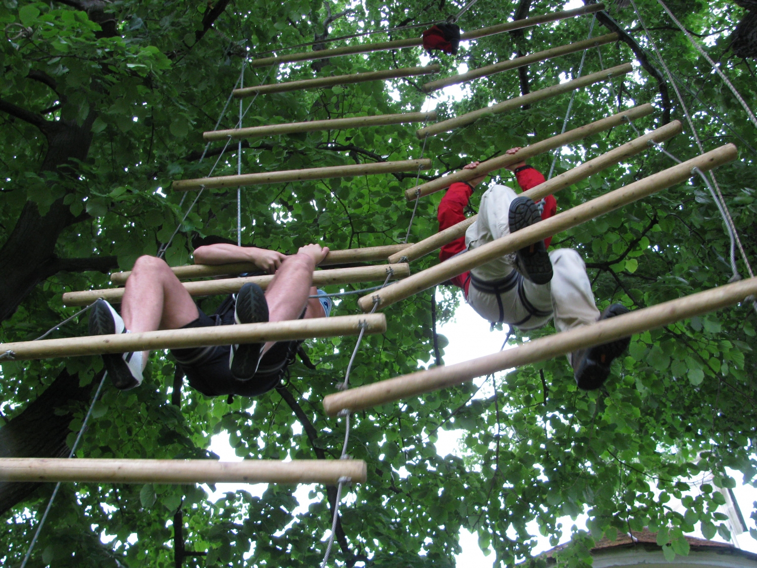 Egy könnyen mászható sziklafalon, vagy speciálisan kialakított mászó falon kell két-három embernek együtt feljutni a csúcsra, hogy a két szélső embert felülről egy-egy hegymászó kötéllel biztosítjuk, a középső embert pedig a két szélsőhöz kötjük két kb. 1 méteres hegymászó kötéllel. A három résztvevő egymásra figyelve, csak a teljes összhangot megteremtve tud feljutni a fal tetejére. A csapat többi tagja hasznos instrukciókkal motiválják a mászókat és a biztosításban is kiveszik a szerepüket.