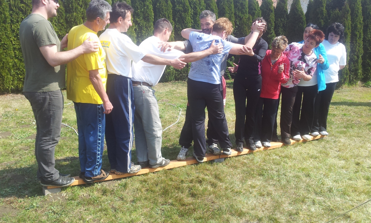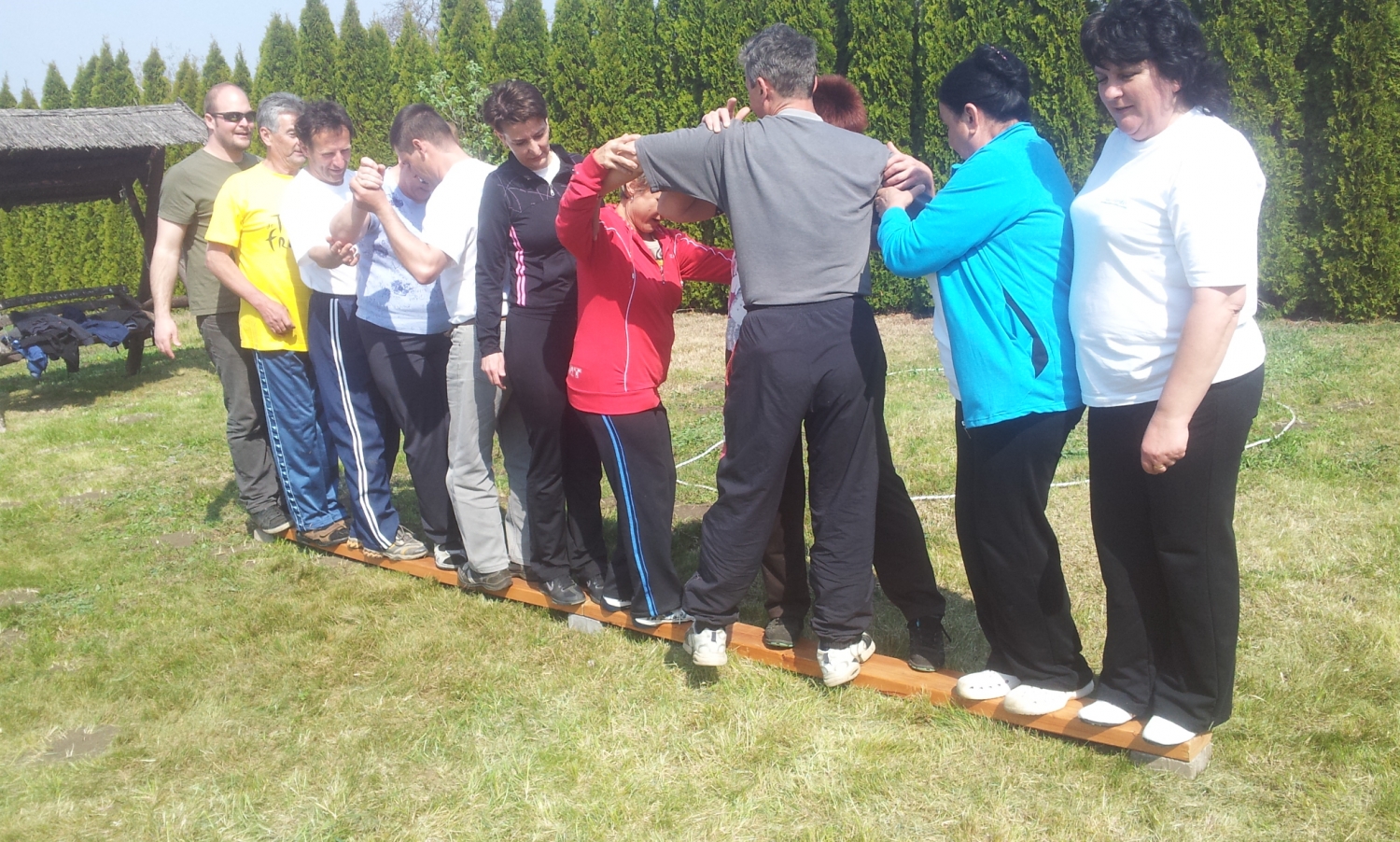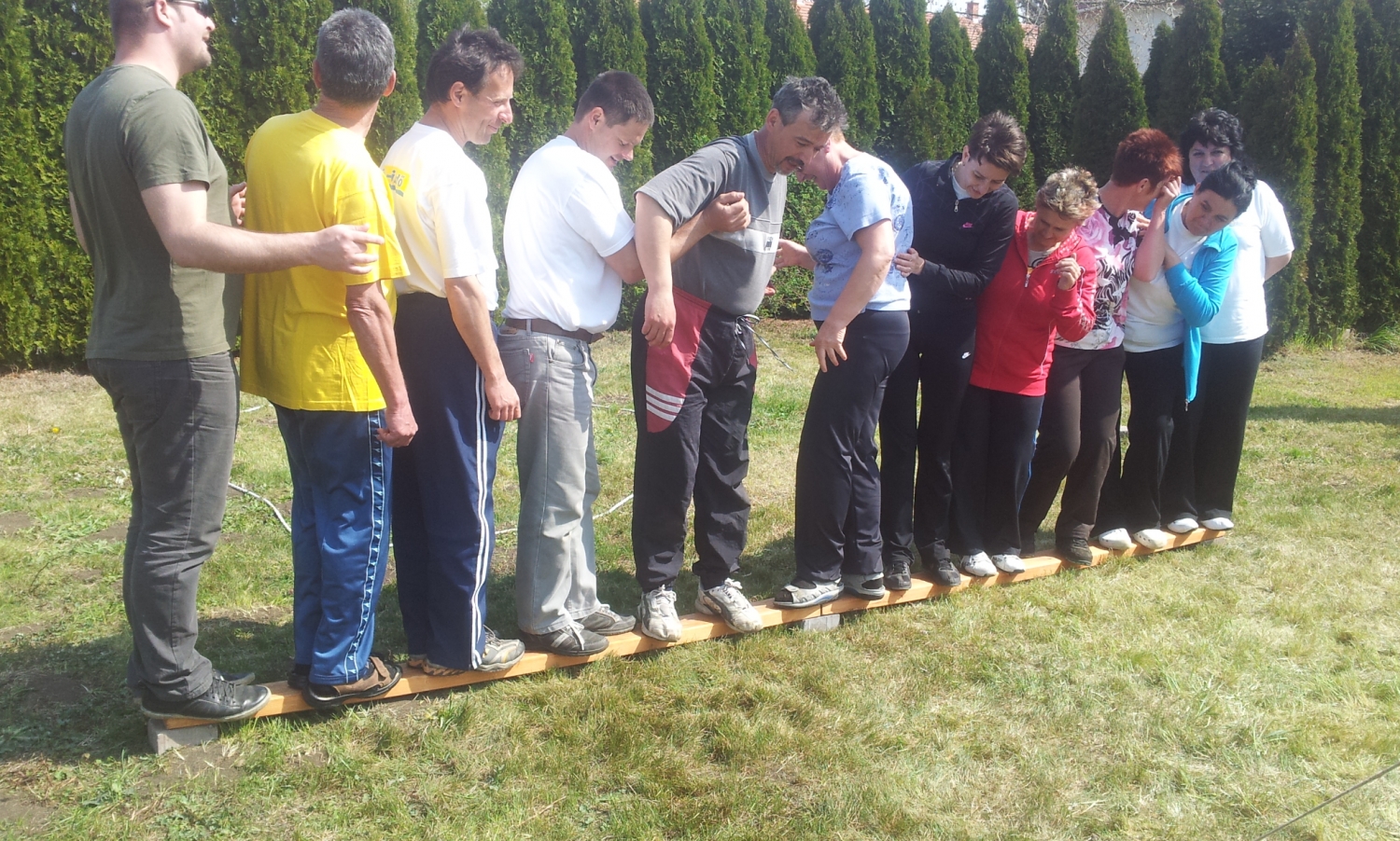 Igazi egyensúlyozós csoportjáték non-verbális kommunikációval. A csapat egy földön fekvő gerendán áll, és az arról való lelépés nélkül kell helyet változtatni, különböző szempontok alapján.